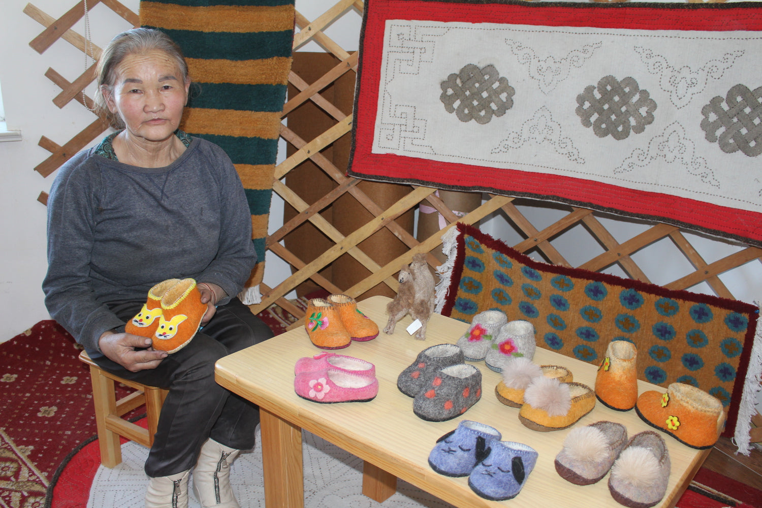 Tsetsegsuren est une ancienne bénéficiaire de l’un de nos programmes de développement communautaire en Mongolie. Avec le soutien de FXB, elle a créé une activité génératrice de revenus et produit des chaussons que vous trouverez sur ce site, mais aussi des pulls en laine, des cordes et des textiles pour les yourtes.